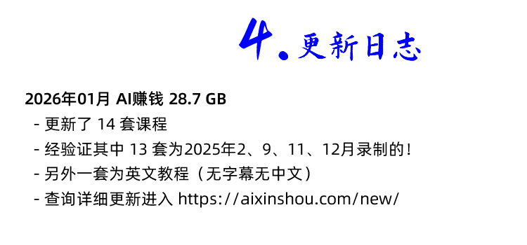 2026年开始 AI赚钱 新课 请自行去更新日志页面查询该课程每次对应的文件更新: