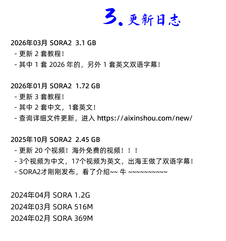 2026年开始 SORA 新课 请自行去更新日志页面查询该课程每次对应的文件更新: