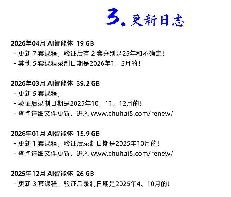 AI智能体 新课 请自行去更新日志页面查询该课程每次对应的文件更新: